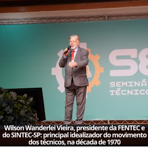 Primeiro presidente eleito do Conselho Federal dos Técnicos Industriais (CFT) em 2018, Wilson Wanderlei Vieira parabenizou os presidentes dos CRTs pelo trabalho realizado em seus respectivos estados e regiões. “Temos a satisfação de estarmos aqui relembrando o passado de lutas e conquistas; e todos que contribuíram têm sua importância para a grandeza do nosso movimento”, disse o principal idealizador do movimento dos técnicos na década de 1970, recordando os dias de dificuldades vividos no Congresso Nacional e a cooperação da senadora Rose de Freitas para se chegar a um desfecho positivo; ou seja, a criação do conselho próprio. Presidente do CRT-MG, Nilson da Silva Rocha, teve a incumbência de homenagear o atual presidente da Federação Nacional dos Técnicos Industriais (FENTEC) e do Sindicato dos Técnicos Industriais do Estado de São Paulo (SINTEC-SP).